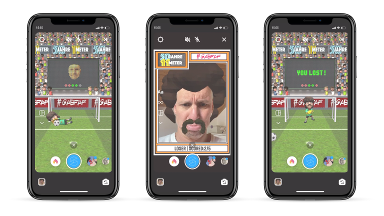 Um dem Spiel bestmögliches Verbreitungspotenzial zukommen zu lassen, haben wir es als „Social AR Game“ für die Plattformen Instagram und Facebook konzipiert und umgesetzt. Die entsprechende AR Entwicklungsplattform (Spark AR) verfügt über eine Face Detection-Technologie, die es den Usern ermöglicht, das Elfmeterschießen über Gesichtssteuerung zu spielen. Aus gegebenem Anlass haben wir das gesamte Spiel selbstverständlich im Style der 70er Jahre gestaltet.